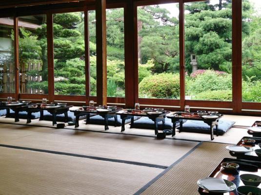 明治時代から続く老舗の料亭です。ケヤキで造られた重厚な梁と太い柱が見事な館内は、明治中期の豪農の屋敷を移築したもの。ゆったりとした空間には、美しい欄間や屏風絵などが飾られ、歴史と伝統を感じることができます。