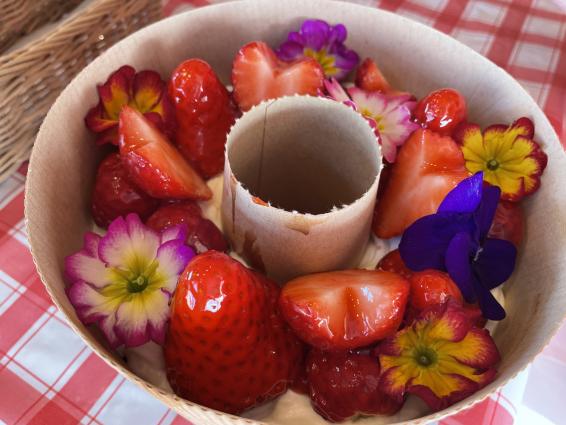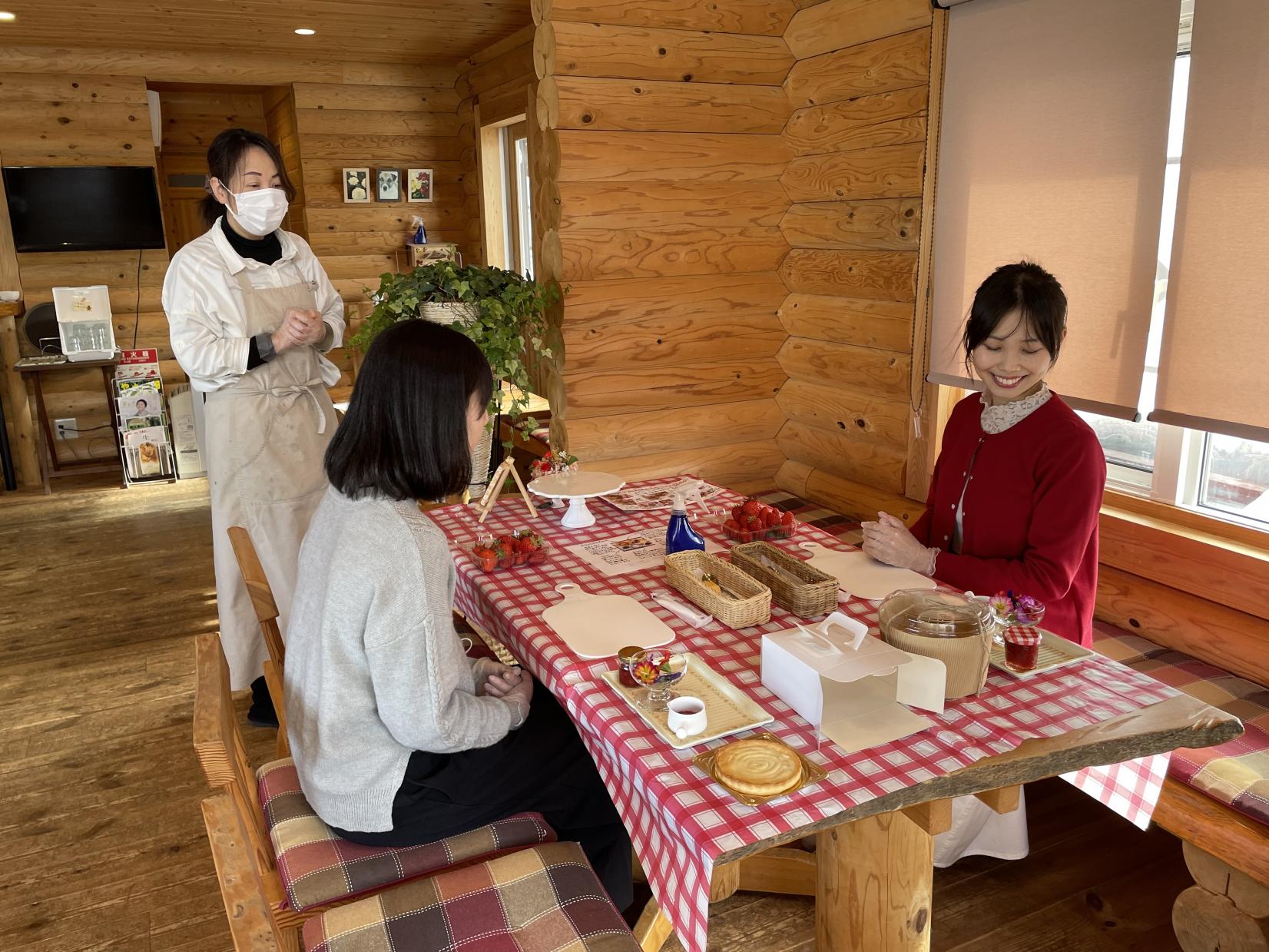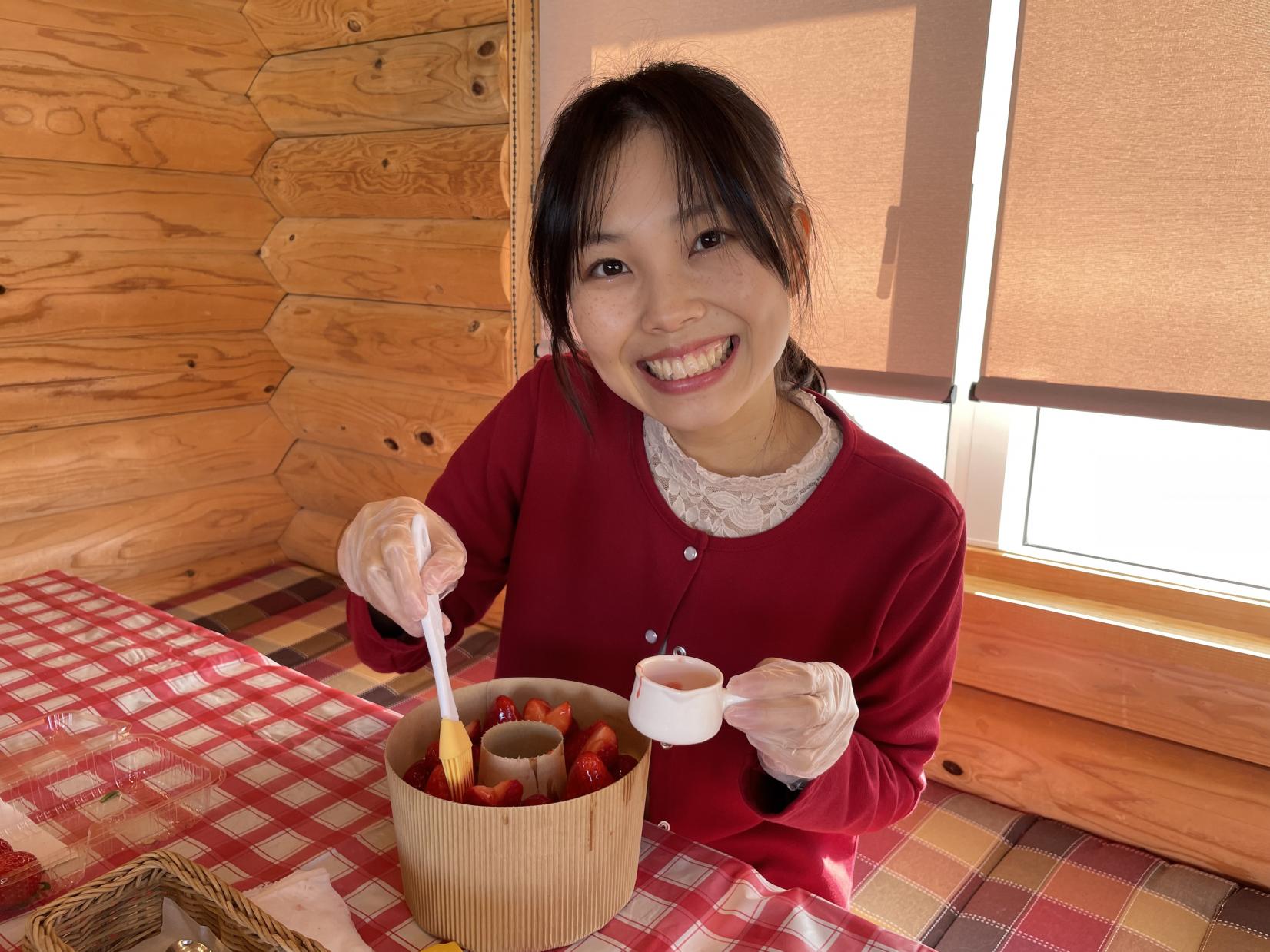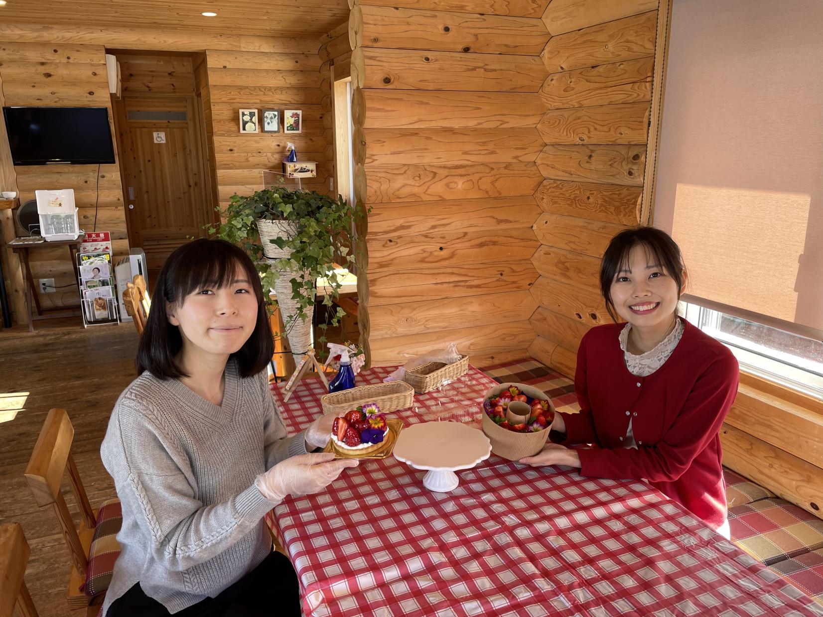 お客様が収穫した苺を使って、苺のタルトやスコップケーキをデコレーションします。