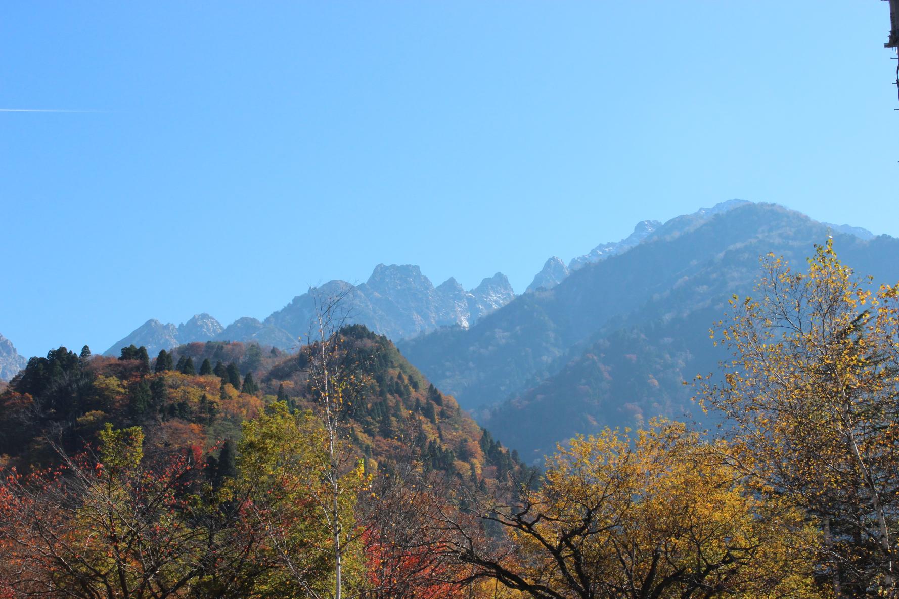 剱岳の登山口馬場島では10月中旬から11月上旬に紅葉をお楽しみいただけます。