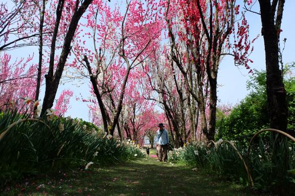 園内は四季折々の植物で彩られ、心地よく散策できます。水仙、桜、ハナモモ、シャクヤク..と咲き誇る中、お散歩するのもよし、カメラ片手にシャッターを切るのもよし、ベンチに座って香りを楽しむのもよしです。