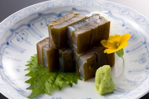昆布文化のある富山。北前船で北海道から運ばれてきた昆布で刺身を〆ることで、昆布のうまみが刺身に移り、保存期間も伸びると、伝統のある郷土料理の一つです。富山県内で食すことはできますが、販売用加工食品として作り始めたのは魚津のかねみつが始まりで、一般的にはサス(カジキマグロ)が主流ですが、最近はエビやイカなどの魚介類以外にも山菜を昆布締めにしているところもあるようです。自宅用にはもちろんのこと、贈答用にもいろいろなバリエーションが取り揃えられているので、是非一度召し上がってみてください。
