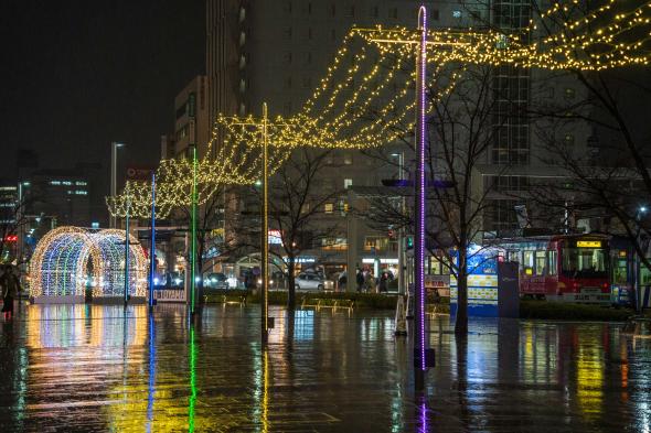 今年も富山駅南口と北口駅前広場に、ライトポールやカラフルに色が変化するライトトンネルが設置されます。