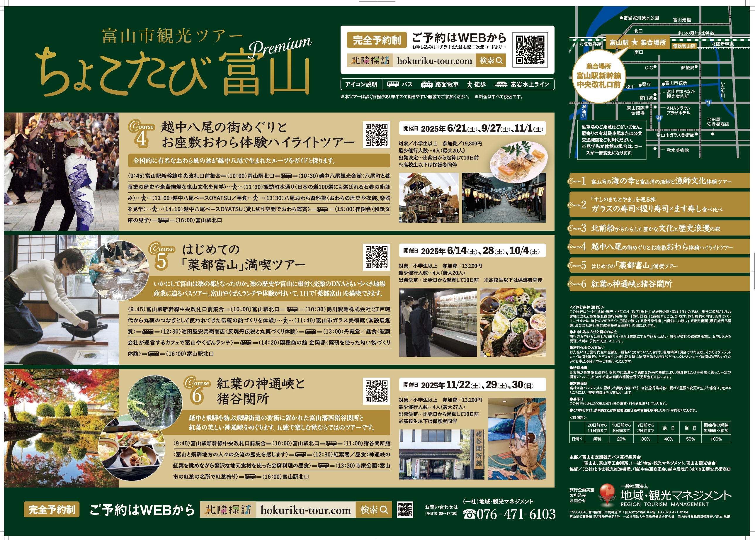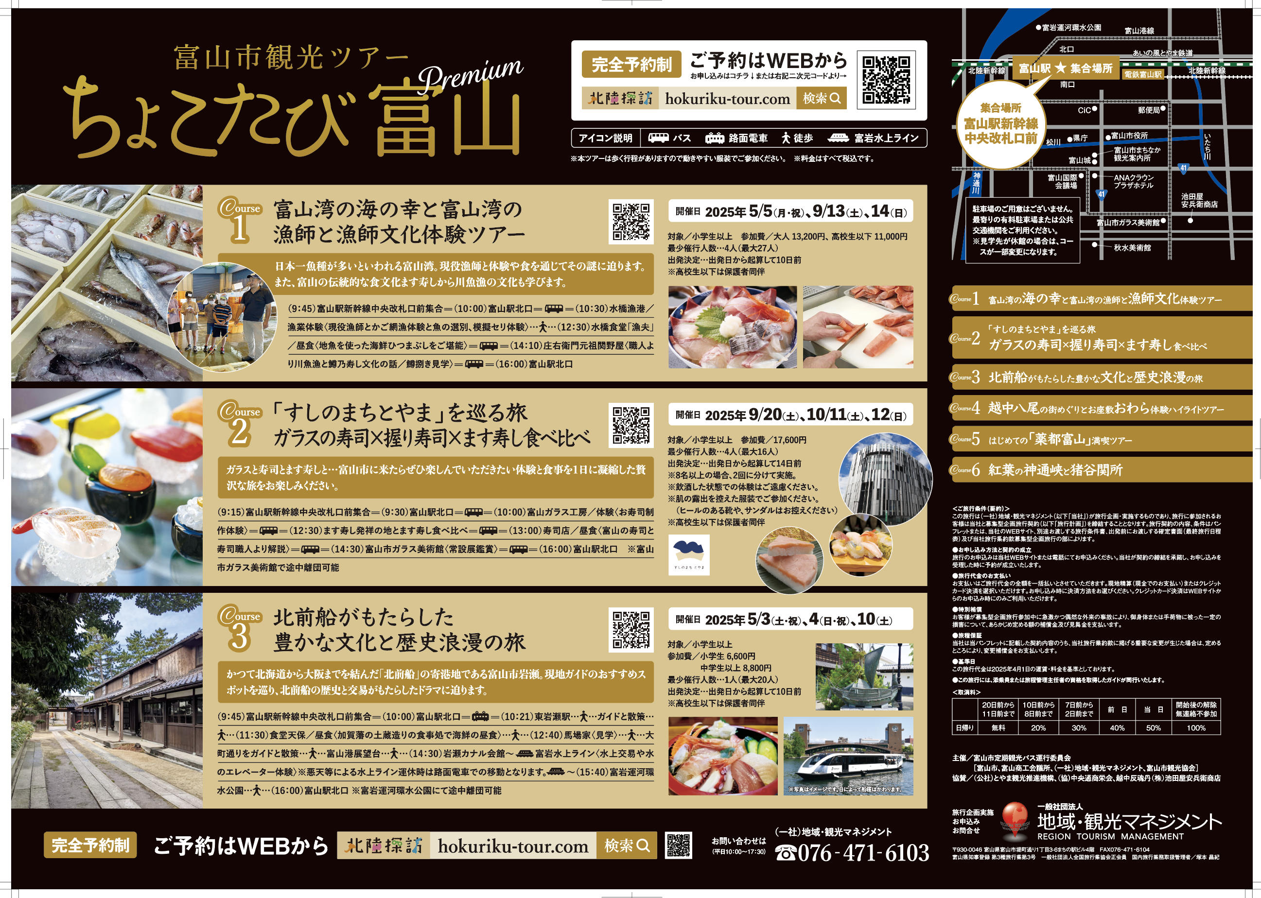 | 関連資料 | 2025富山観光ツアー『ちょこたび富山』プレミアムチラシ➀ 2025富山観光ツアー『ちょこたび富山』プレミアムチラシ② |