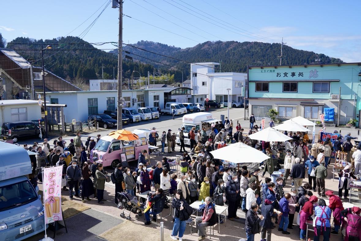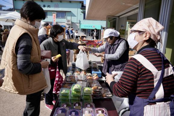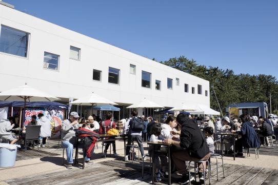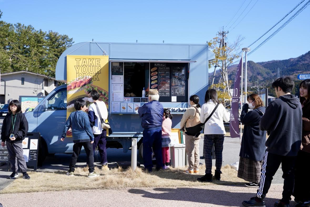 朝日町の名店やキッチンカーなど大集合で、お弁当、押し寿司、焼き芋、甘酒などたらふく召し上がれ。