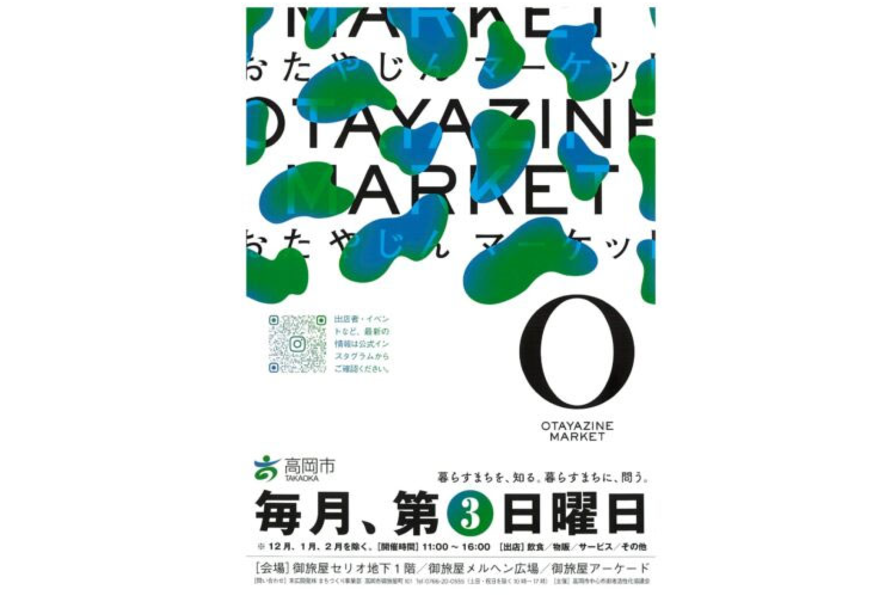 「おたやじんマーケット」は、次世代を担う高岡市民が街を知り、人に出逢い、新しい働き方を考えるための、暮らしの見本市。「まち、ひと、しごと。」を合言葉に、毎月第3日曜に開催しているマーケットです。