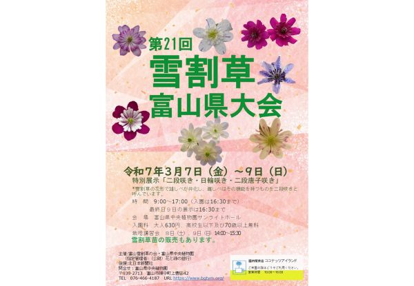 富山県中央植物園では、富山雪割草の会との共催で、第21回雪割草富山県大会を開催します。