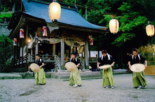 哀調を帯びた旋律にのせて,凛とした気概を映し出す風格ある舞い。風情ただよう神社の境内で繰り広げられる勇壮な舞に、訪れる人々の心は魅了されます。
