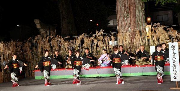 五箇山麦屋まつりは、南砺市平地区下梨地主神社境内で行われる秋祭りで、平家の落人が、刀をくわや鎌に持ち替え、麦を刈るときに唄ったと伝えられる麦屋節をメインに歌い踊られます。