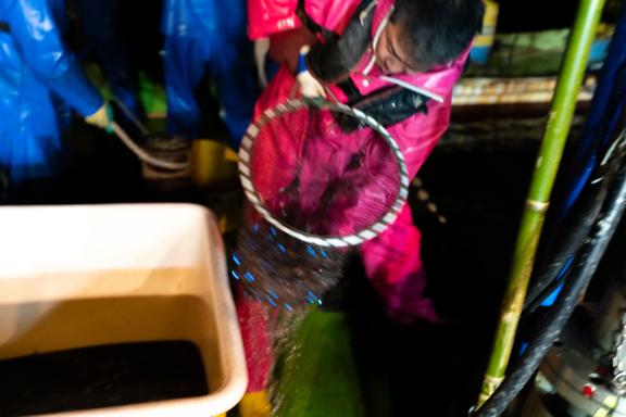 ホタルイカの漁期は1年のうち数ヶ月。夜明け前に出港し、きらめくホタルイカの神秘的な光や漁師たちの漁の様子など、貴重な瞬間を体験をすることができます。