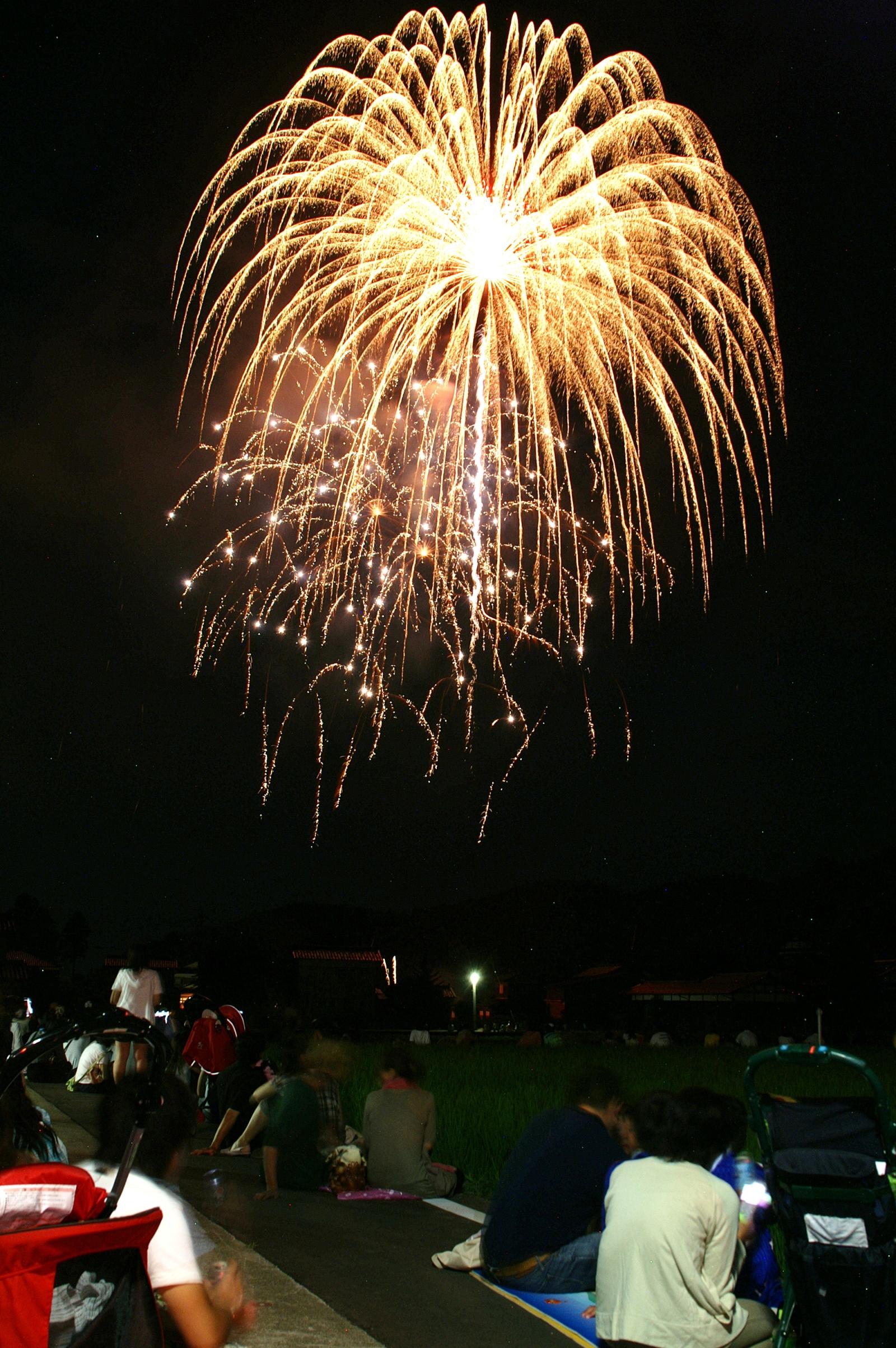 毎年7月第1土曜・日曜に行われる舟見の七夕祭りです。地域の家ごとに趣向を凝らし飾り付けられた色とりどりの七夕竹でまち並みが華やぎます。また、町内の若衆が作る歴史上の人物や世情を写した人形も店先に並べられ披露されます。目玉は花火。町内外からたくさんの人が訪れ、山々に共鳴する轟音と夜空を彩る美しい光景で迫力満点です。他にも短冊コンテストやマラソン大会などイベント豊富な2日間です。