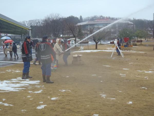 神主による御神火の点火後は、地元消防団員による放水体験コーナーやあたたかいラーメンやおしるこなどの飲食コーナーも楽しめます。ご家族そろってお越し下さい。