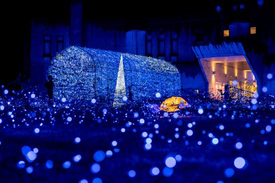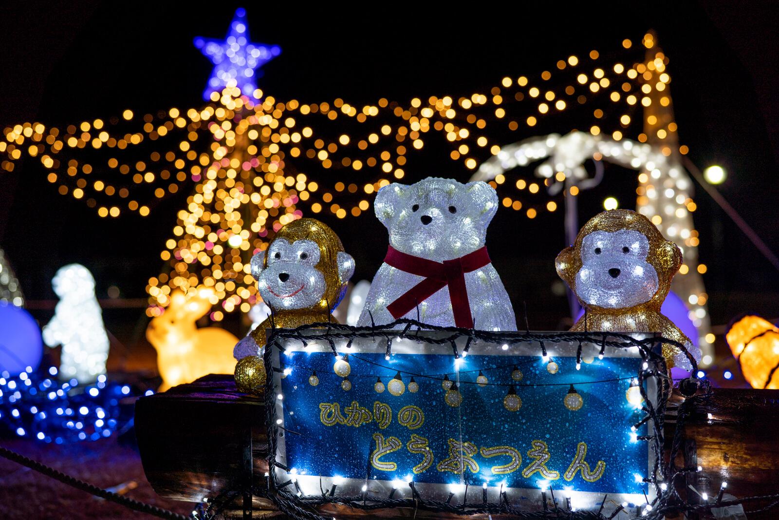 クロスランドおやべを彩るイルミネーション。幻想的な世界が広がる光の海や、光のトンネル、かわいい動物たちが来場者を迎える光の動物園、光のドーム、ロマンチックなイルミネーションが楽しめます。