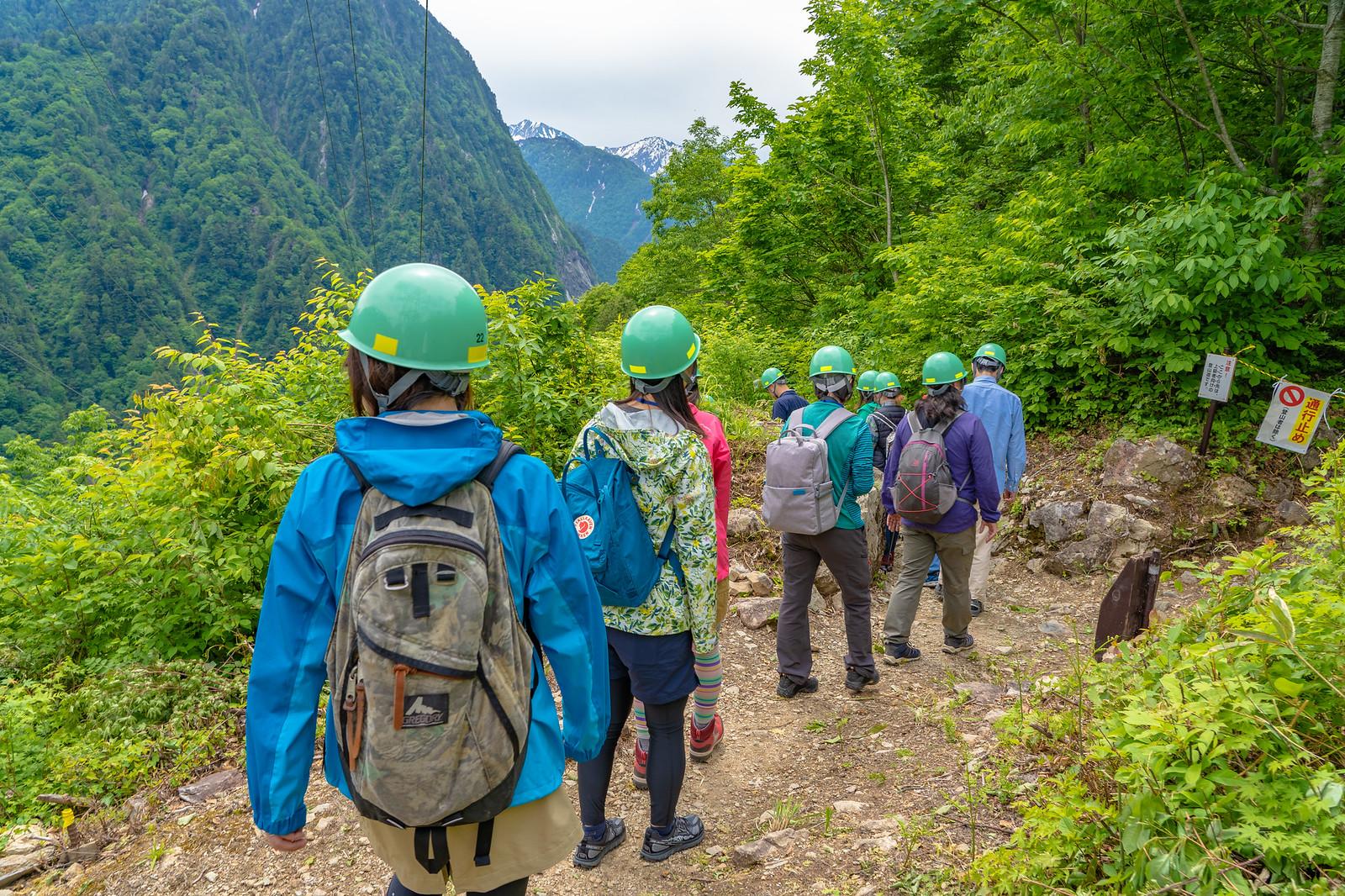 黒部峡谷トロッコ電車終点「欅平駅」のその先、一般のお客さまは立ち入ることのできない関西電力工事用区域内の「専用列車」・「トンネル」・「高低差200mの堅坑エレベーター」と、周辺の白馬鑓ケ岳、唐松岳など北アルプスの山々を間近に展望できるルートを散策します。
