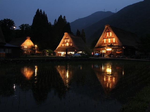 世界遺産ー五箇山菅沼合掌造り集落ライトアップ
