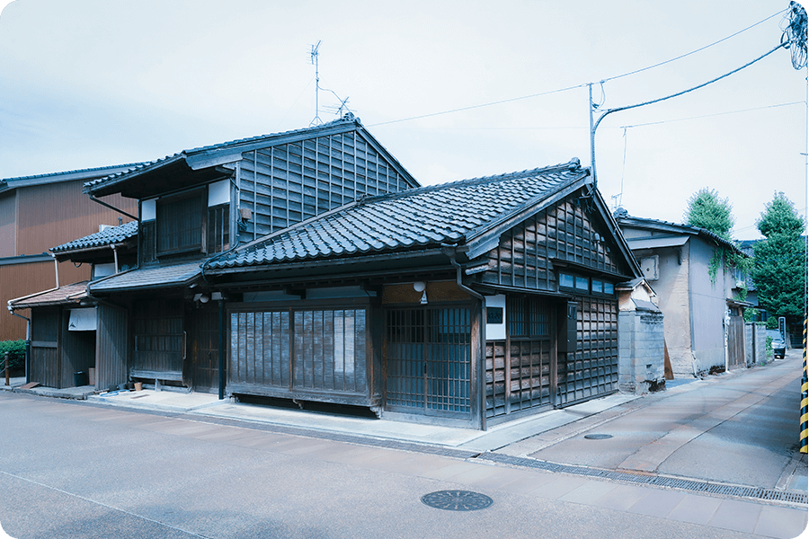 富山市北部にある岩瀬地区は、明治から大正期にかけて大阪と北海道を往復していた北前船の寄港地として栄えました。当時の廻船問屋や土蔵群は現在も姿が残されており、和食やフランス料理店、作家の工房、資料館となって町並みに溶け込んでいます。「GEJO」もその中の一軒。