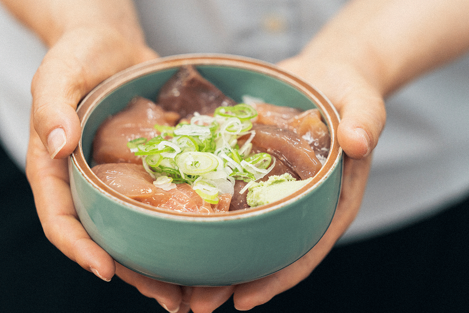 鮮魚仲卸の老舗「釣屋魚問屋」が運営する、氷見漁港2階の人気食堂。目の前の市場で朝競り落とされた氷見獲れ魚だけを使うため、鮮度の高さはお墨付き。名物の海鮮丼を目当てに、早朝6時半の開店から賑わう。丼ぶりと定食に付く漁師汁もあわせて、魚の旨みを存分に堪能しよう。