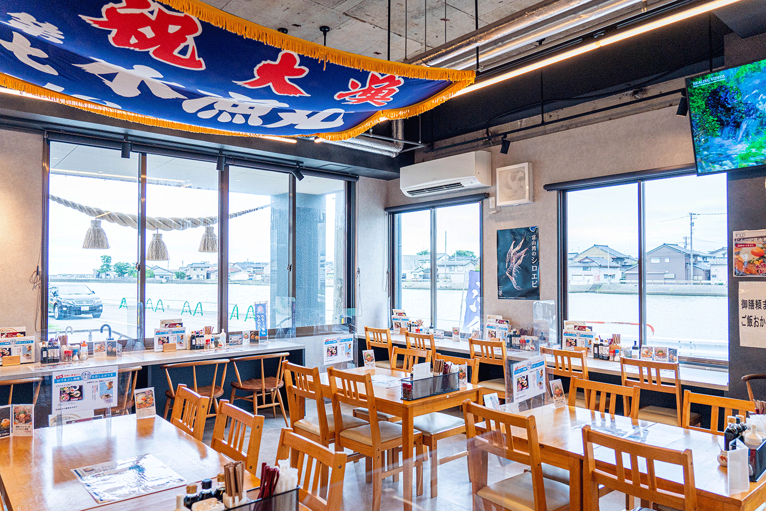 魚津漁業共同組合がプロデュースする、漁協倉庫を改装したおしゃれな港町食堂。「暮らしの中にある魚津の食卓」をコンセプトとした魚津名物の「バイ飯定食」(1,600円)など、素材の良さを活かした料理を楽しんで。店員さんの明るく親しみやすい接客も評判。