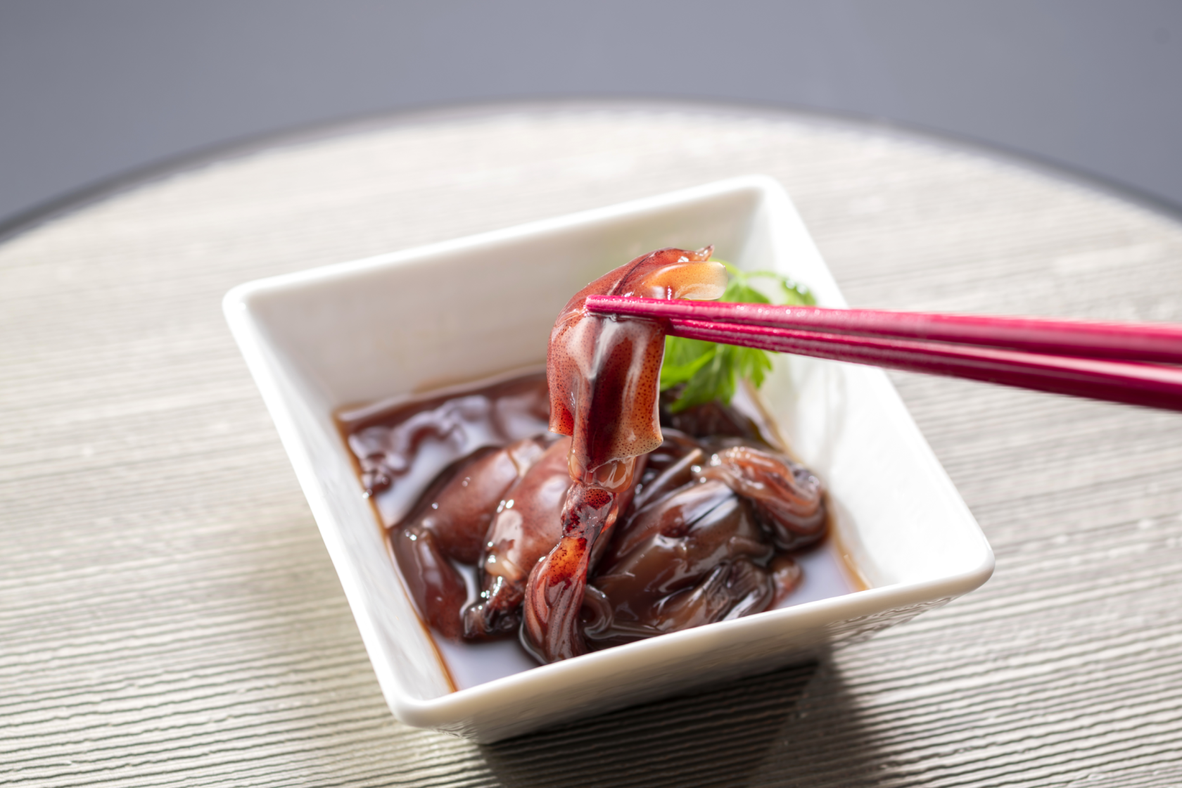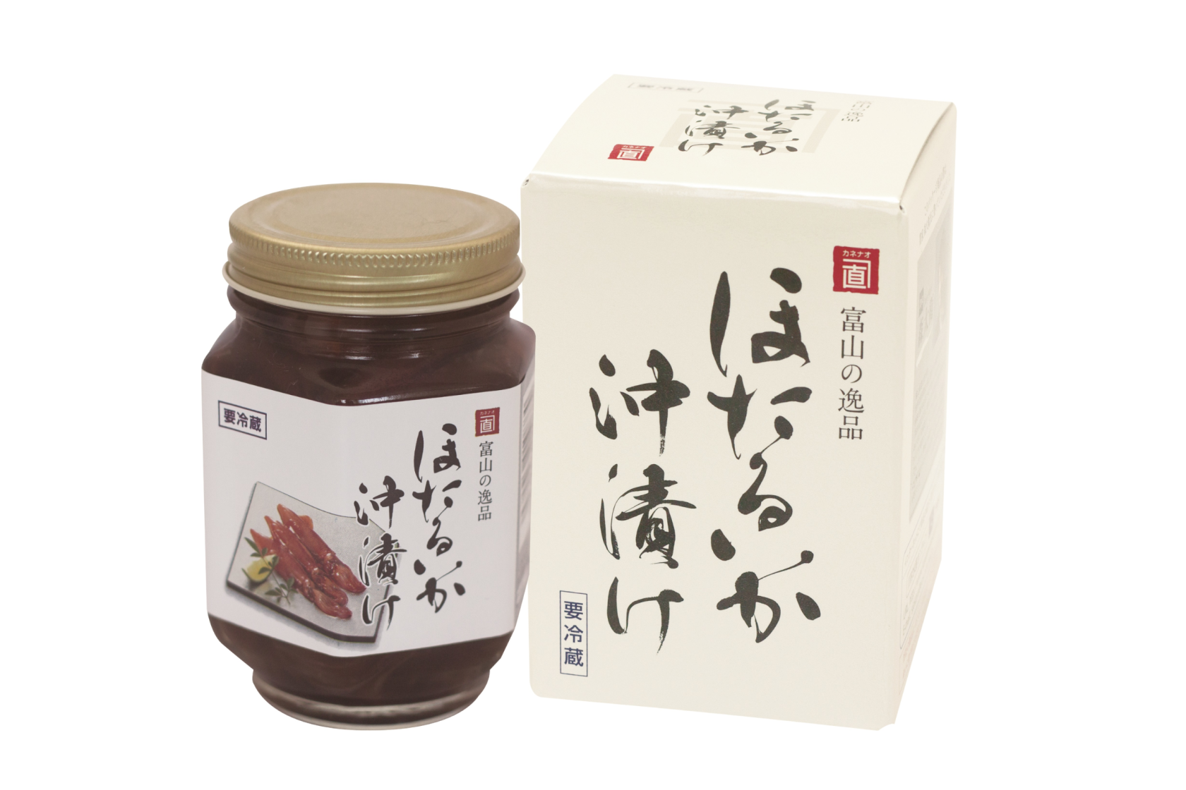 第28回全国水産加工品総合品質審査会で最高賞「農林水産大臣賞」を受賞している「プレミアムほたるいか沖漬け」は、富山湾で水揚げされたホタルイカだけを厳選して使用している、その名の通り最上級の上質な味わいを楽しめる品。富山のホタルイカ特有のプリッとした食感を壊さないよう、手作業で丁寧に加工しているそう。
