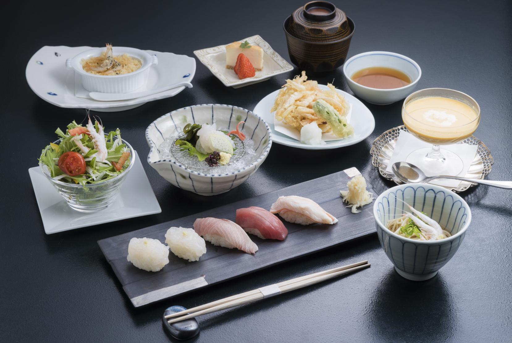 「白海老満喫膳」は、シロエビの繊細な美味しさを引き出した和洋折衷コースです。刺し身で上品な甘みとトロリとした舌触りを味わえるのは、富山だからこそできる贅沢な食体験。揚げるとさらに身が甘く感じられるので、かき揚げでは殻の香ばしと甘さが同時に満喫できます。また滑らかなビスクには、濃厚なシロエビの旨みが凝縮しています。一品ずつ、しみじみと味わいましょう。