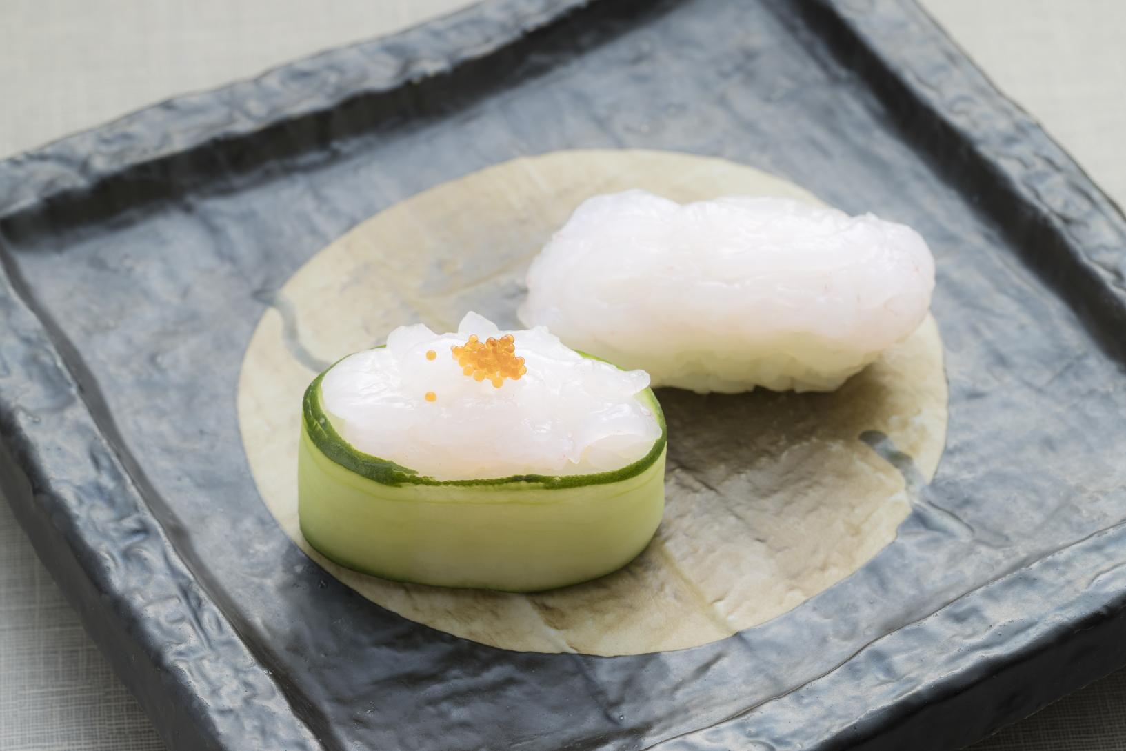 口に運ぶと甘くとろける、富山の誇るシロエビの握り