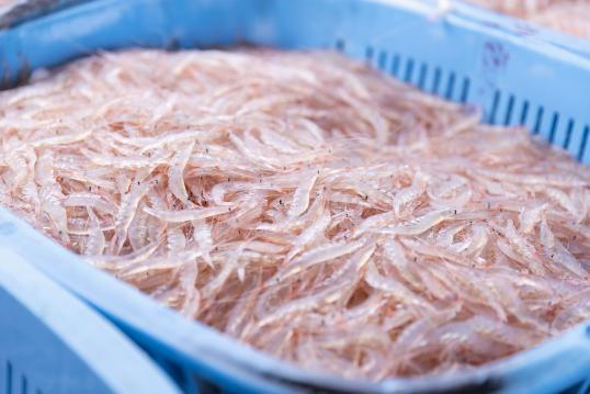 目の前で海から引き揚げられるシロエビは、淡いピンク色。キラキラと美しい輝きを放っています。船上では漁師さんとの会話も楽しめます。漁港に戻ったら、仕分け作業や、競りの見学もできます。