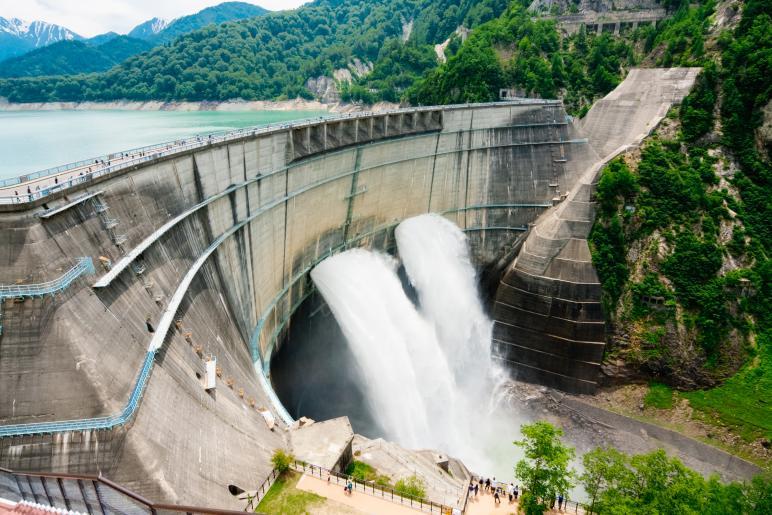 日本一高い186mの堰堤(えんてい)から、毎秒10t以上もの水が、霧状になって放水されている光景は圧巻。天候に恵まれれば、霧に美しい虹がかかります。展望台や階段、新展望台(レインボーテラス)など、ビュースポットも揃っています。 -