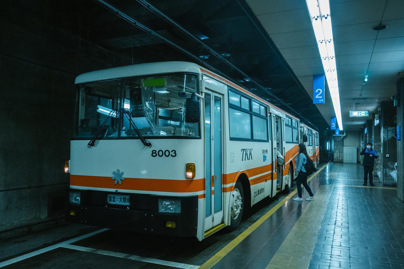 立山の直下を貫通しており、室堂から大観峰までを10分で運行。電車線から電力を受けて走行しているのでバスで、トンネル内に排ガスが溜まりません。今シーズンで運行が終了します。