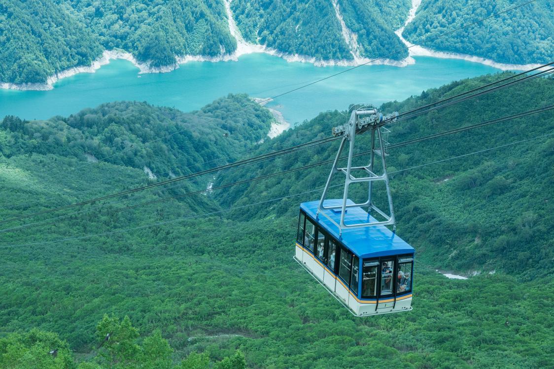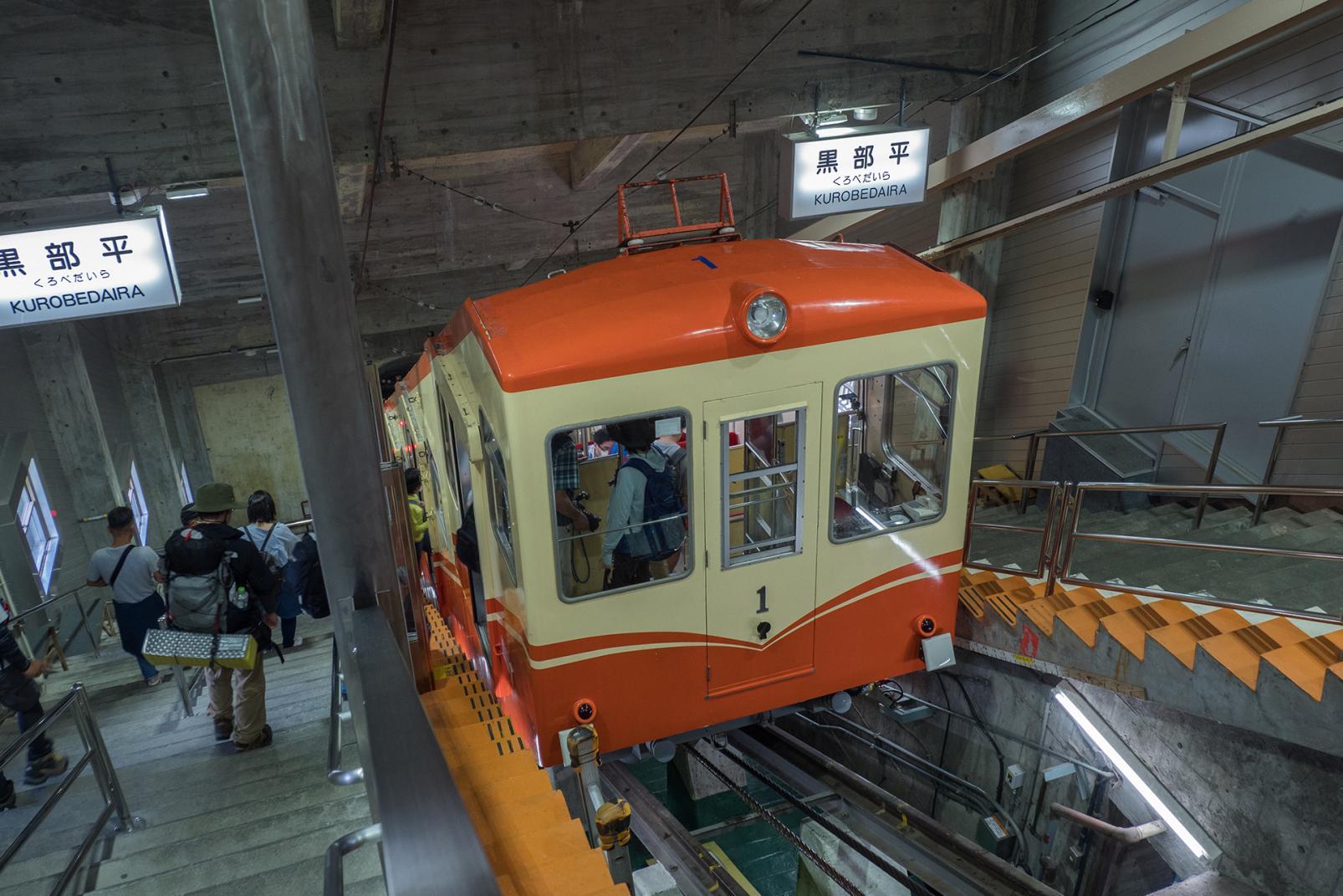 黒部平と黒部湖をケーブルカーは、日本で唯一の全線地下式ケーブルカーで、最大勾配は31度もあります。全線トンネルの中を運行しています。