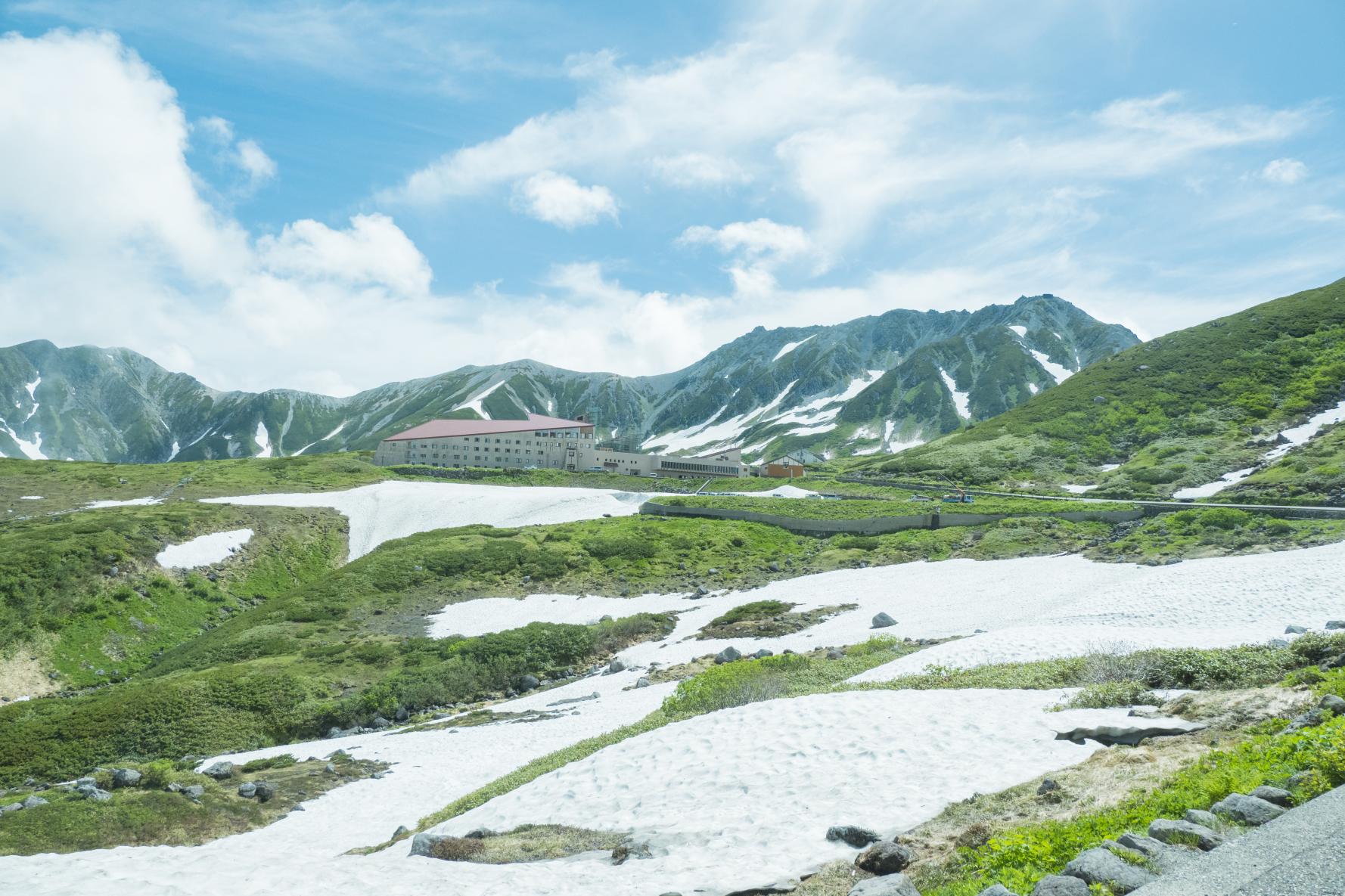 富山駅から約2時間乗り継ぐと、標高2,450mの立山・室堂に辿り着く。澄みわたる空気が、全身をやさしく包み込んでくれます。目の前に標高3,000m級の山々がそびえる雲上の世界は、ため息がこぼれるほどの美しさ。思い切り深呼吸したら、日常から心が解放されてゆくのを感じるはずです。