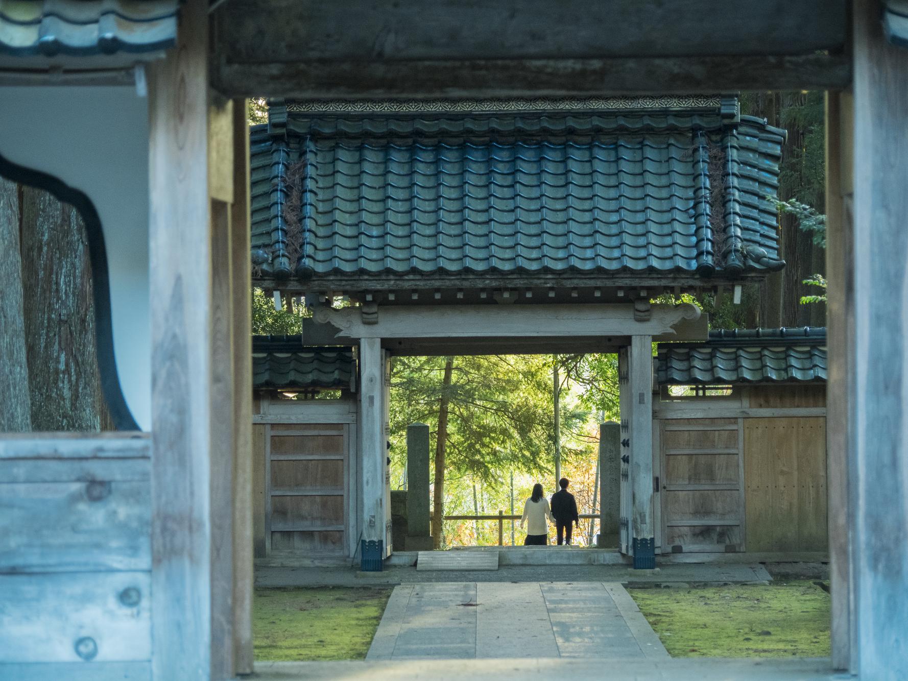 曹洞宗の名刹である立山寺の総門に続く参道は、樹齢400年のトガ並木やスギが立ち並ぶ美しい場所で、木立の間を歩いているだけで神聖な気持ちに包まれます。トガの木は高さ約20m、幹の太さが3mにも及び、富山県の天然記念物に指定されています。総門辺りからは、上市川の流れの向こうに富山平野が見渡せ、天候に恵まれば富山湾の向こうにある能登半島も望めます。お寺のある眼目エリアは森林セラピーに最適で、自然のパワーを享受して心身をリフレッシュできます。