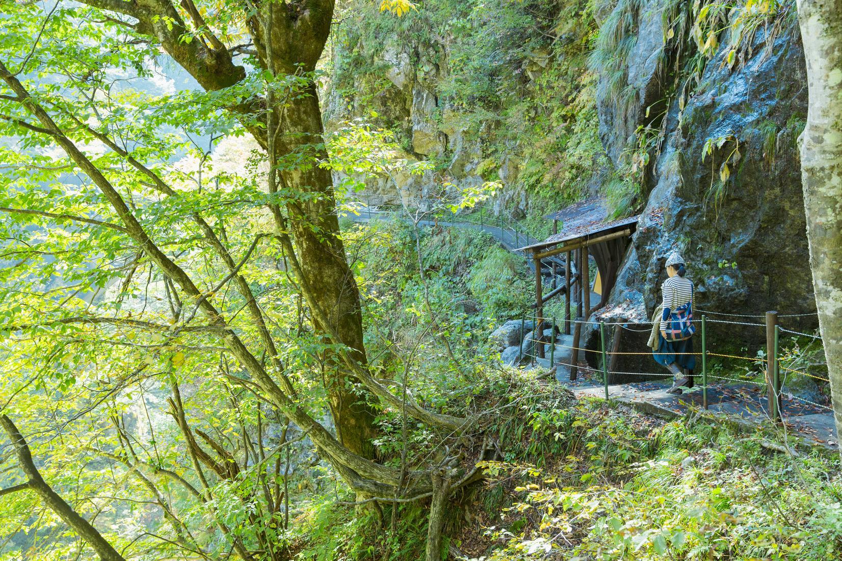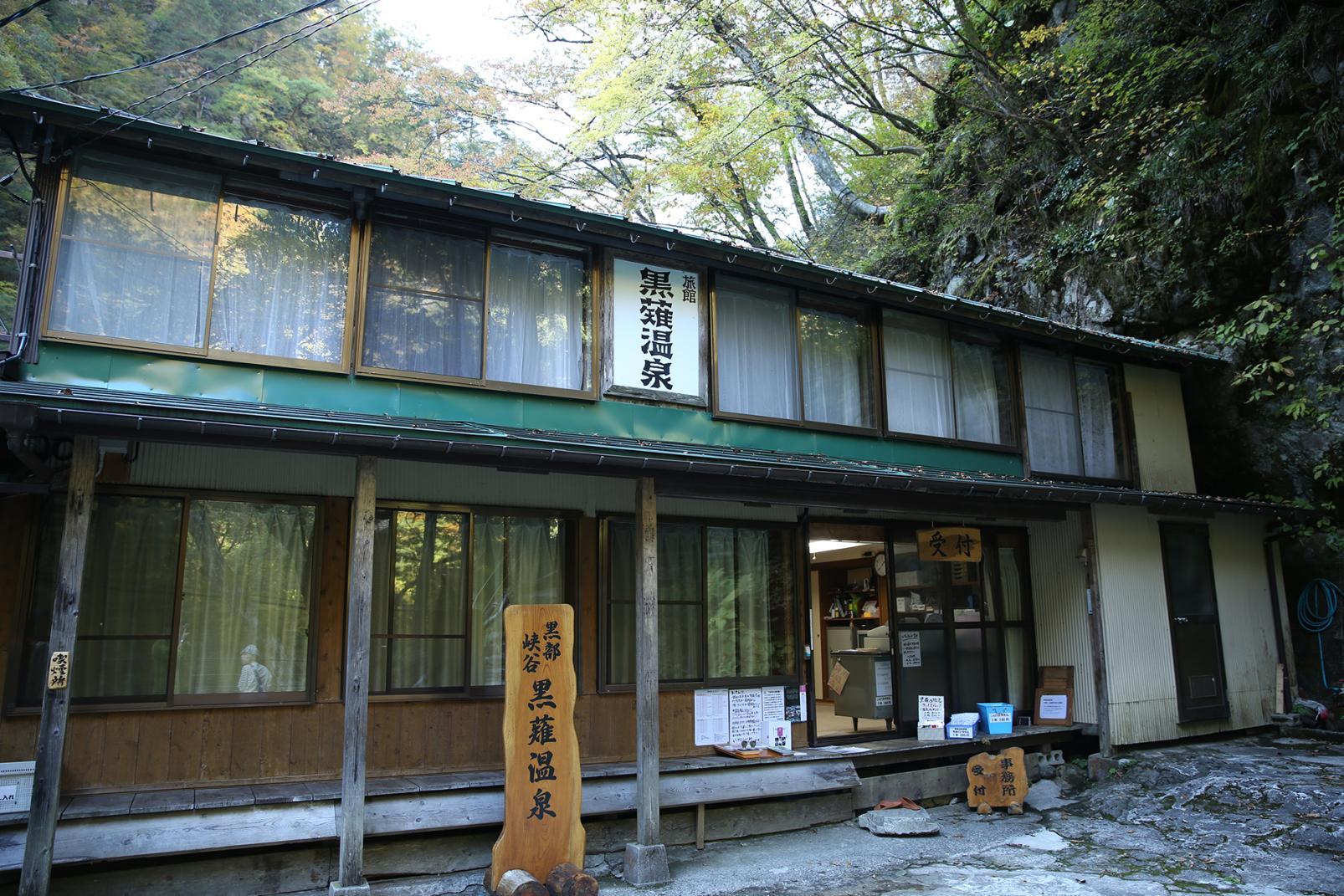 駅から階段や山道を約20分歩くと、江戸時代から歴史を重ねてきた黒薙温泉に到着します。黒薙温泉は宿泊、日帰り入浴ができ、山菜定食などのメニューも提供しています。黒部川のそばからは温泉の白い湯気がもくもくと立ち上り、川のせせらぎや虫の声、木々のざわめきが、心をやさしく癒してくれるスポットです。