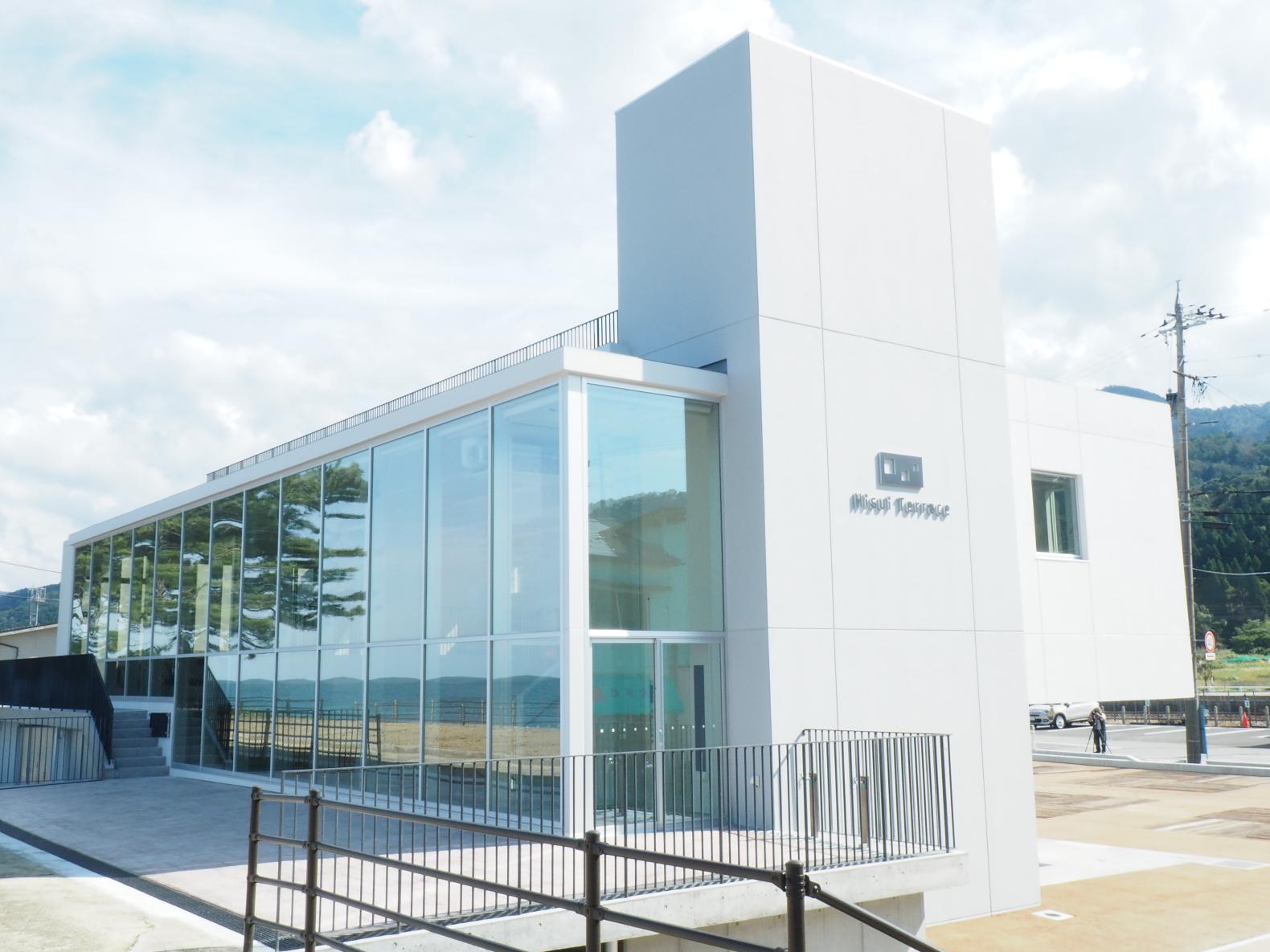 目の前に海が広がる、ヒスイ海岸観光交流拠点施設「ヒスイテラス」。過去にヒスイ海岸に打ち上げられたヒスイや多彩な石の展示を見学でき、常駐するスタッフに無料でヒスイの鑑定をしてもらえる(1人10個まで)。