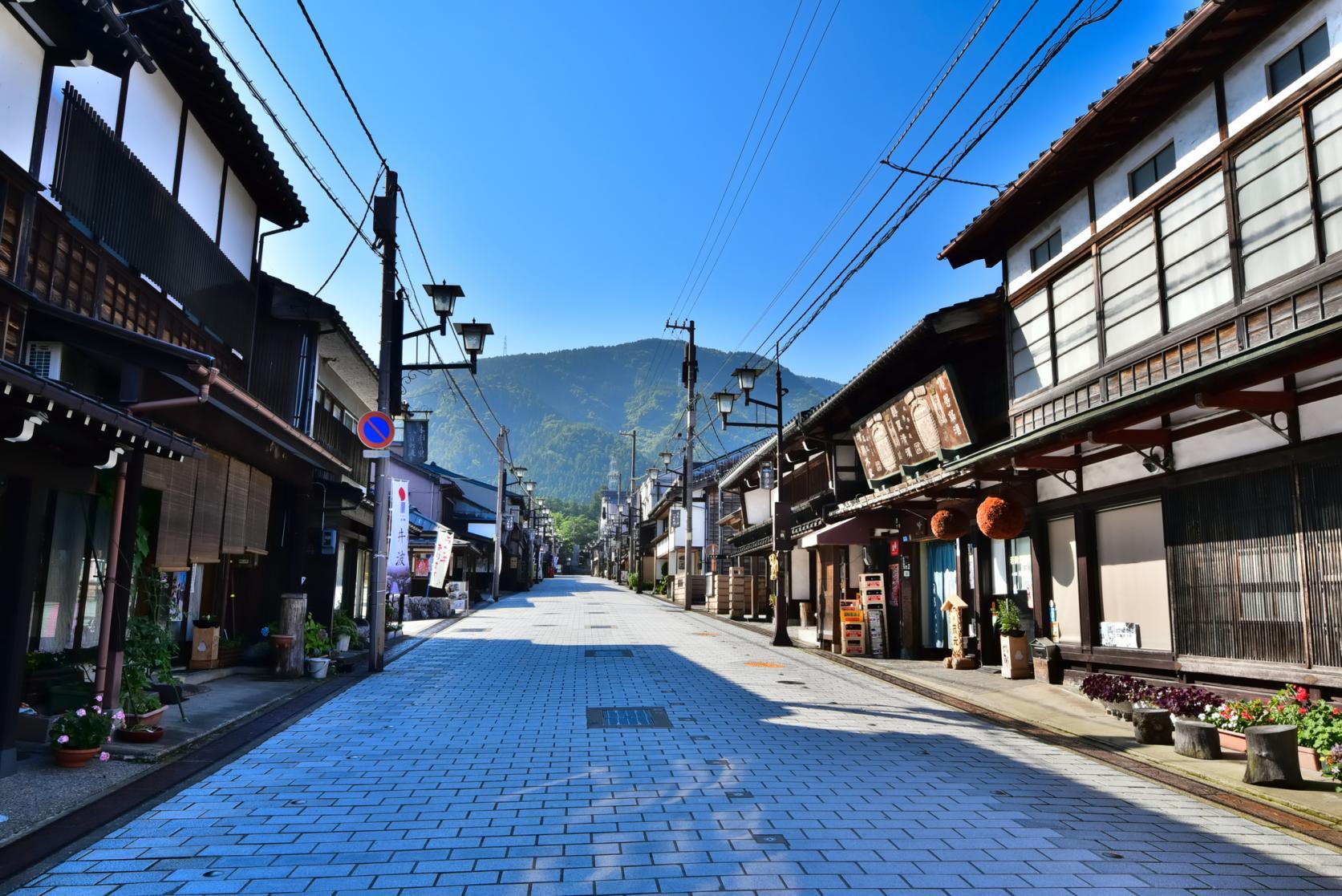 細やかな千本格子造りの家々が軒を連ね、石畳の道と見事に調和して、美しいたたずまいを見せている。