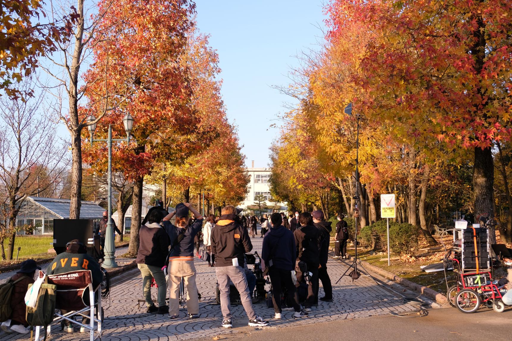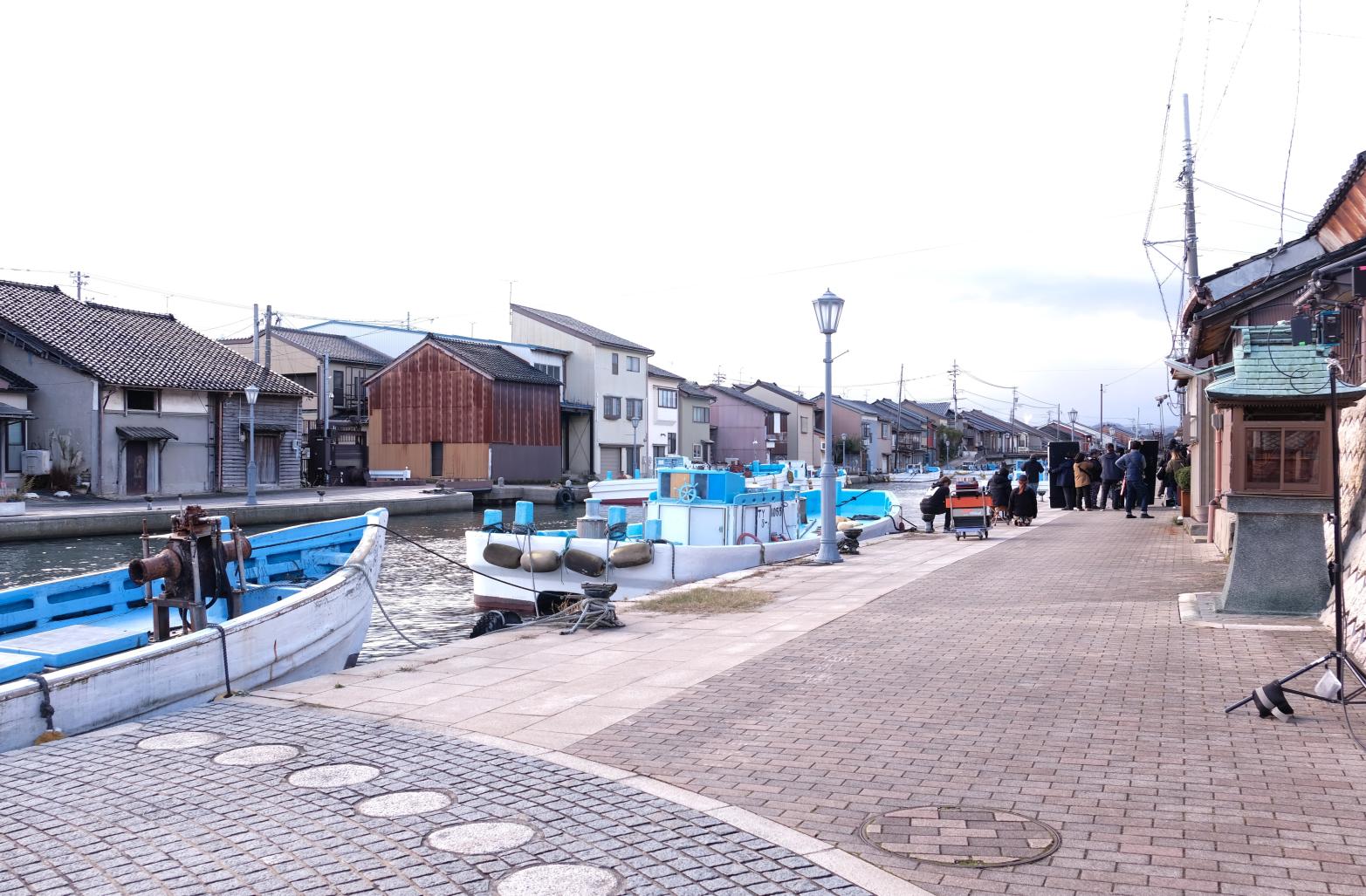 舟川べりで、本作品のオープニングや通学路シーンの撮影が行われたのは11月。