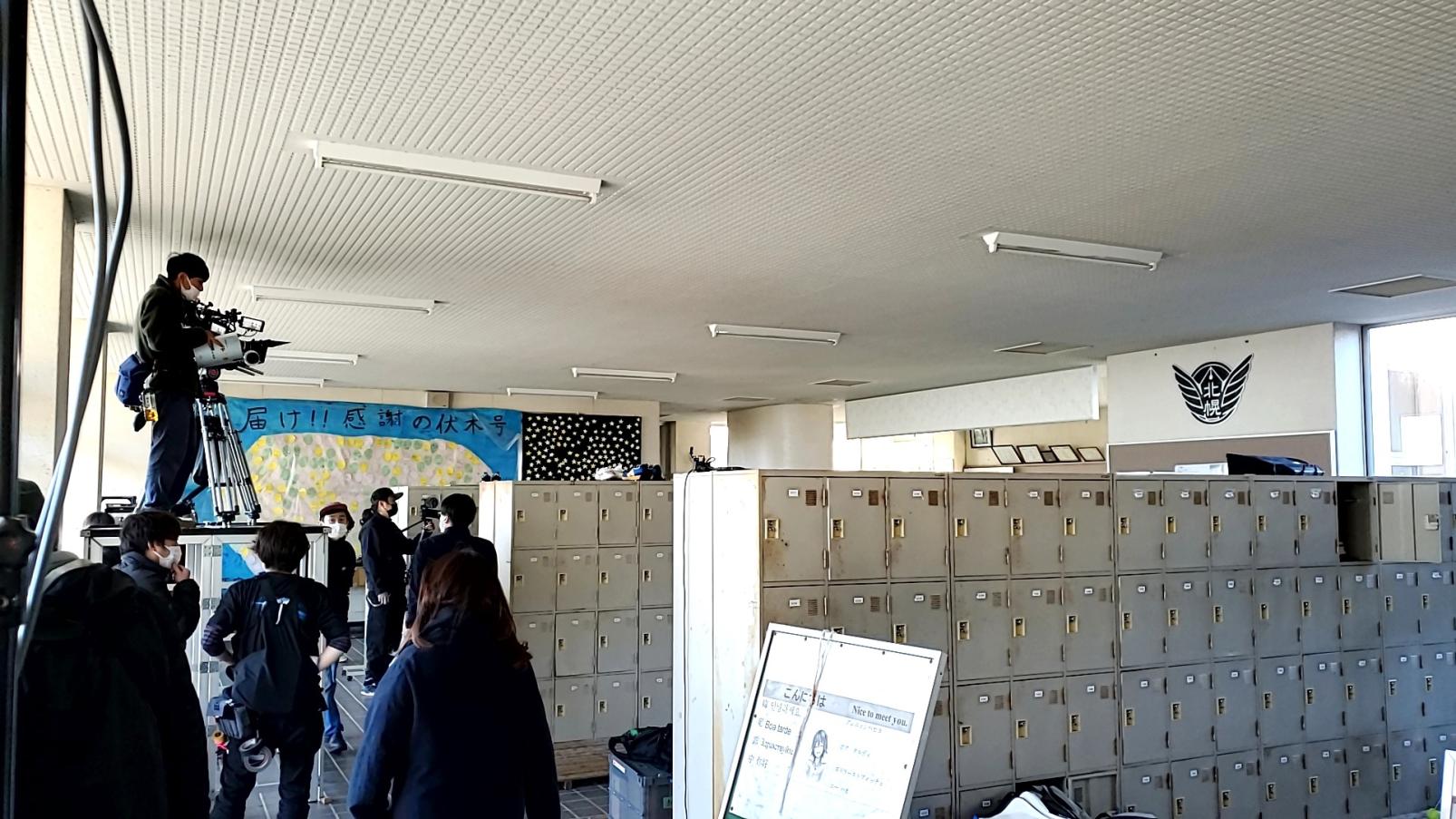 メインの教室のロケ地となった旧泊高校では、閉校直前の1月まで長期に渡り、撮影にご協力いただきました。