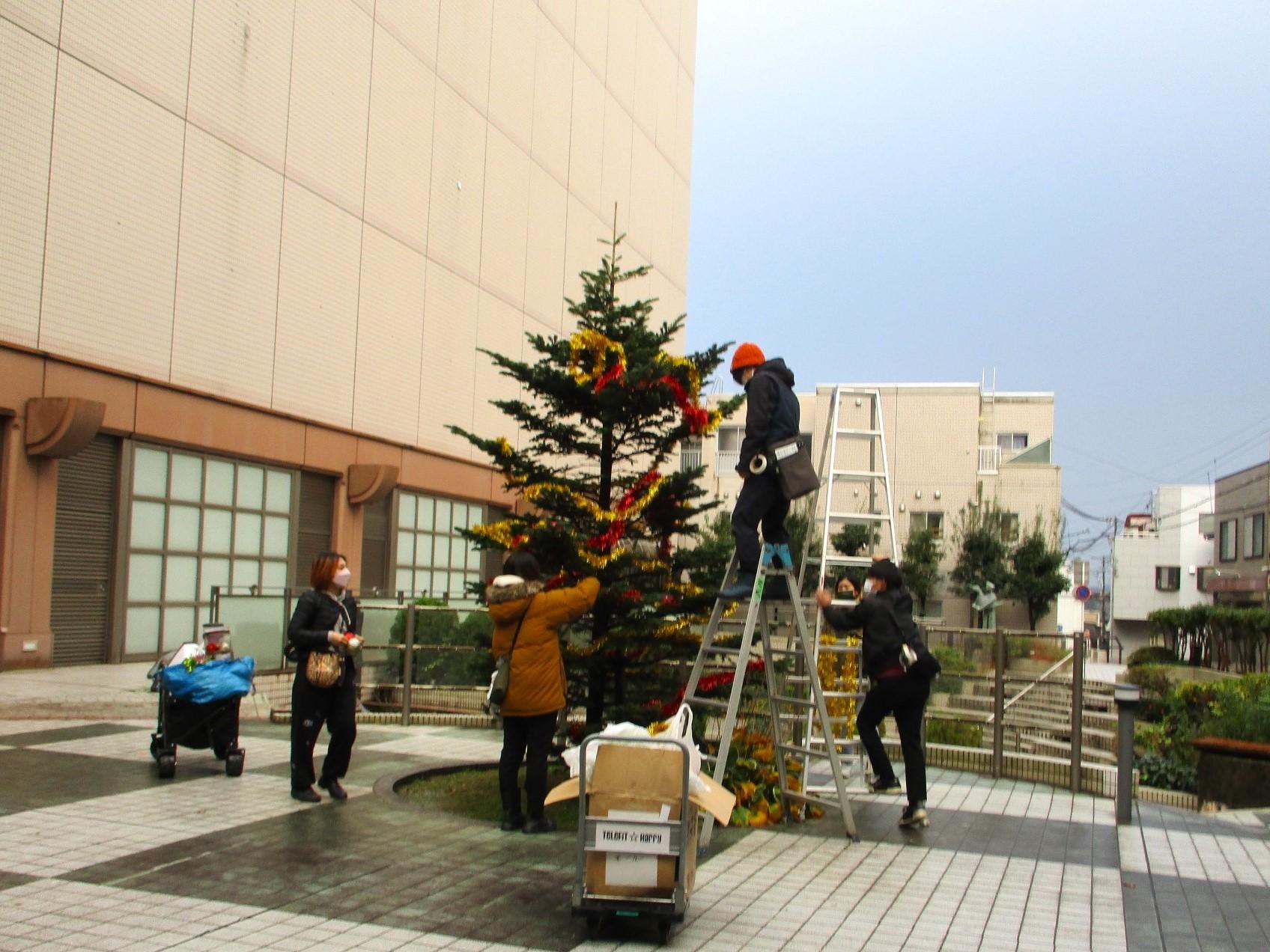ここで撮影したシーンはクリスマスシーズンの設定だったため、メルヘン広場にある「桃太郎」や「ブレーメンの音楽隊」などの銅像たちも、クリスマス仕様に変身!