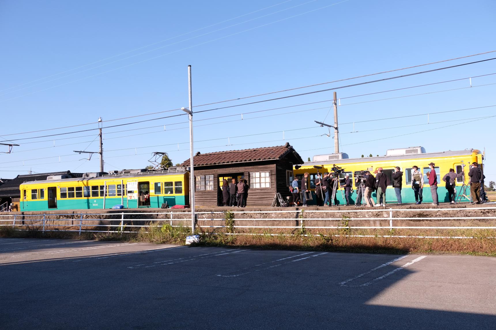 魚津駅で電車に乗り込むシーンを撮影するため、スタッフを乗せた車両が「滑川駅」→「魚津駅」→「黒部駅」を何度も往復運行。
