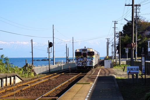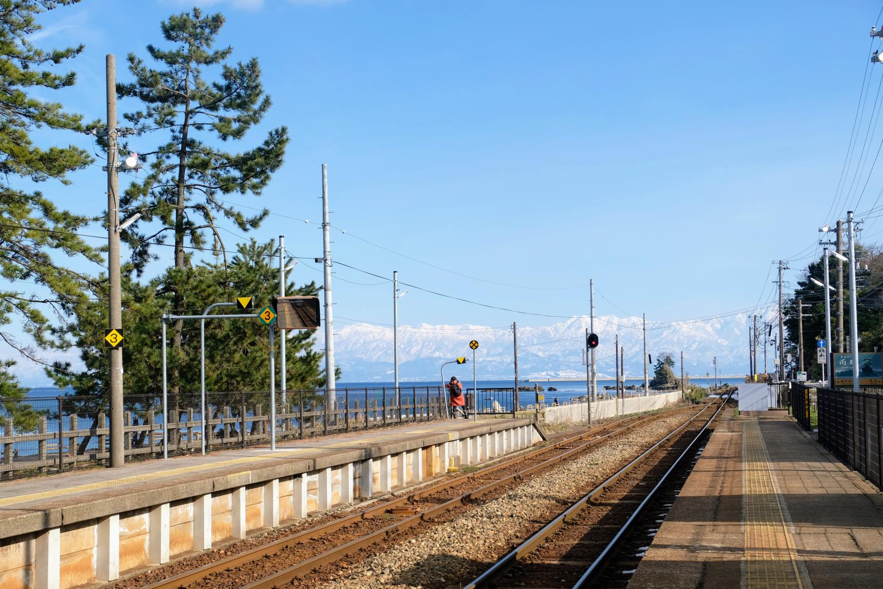 海沿いに面しており、ホームや車内から富山湾が一望できる。