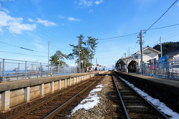 ホームから海が見える駅