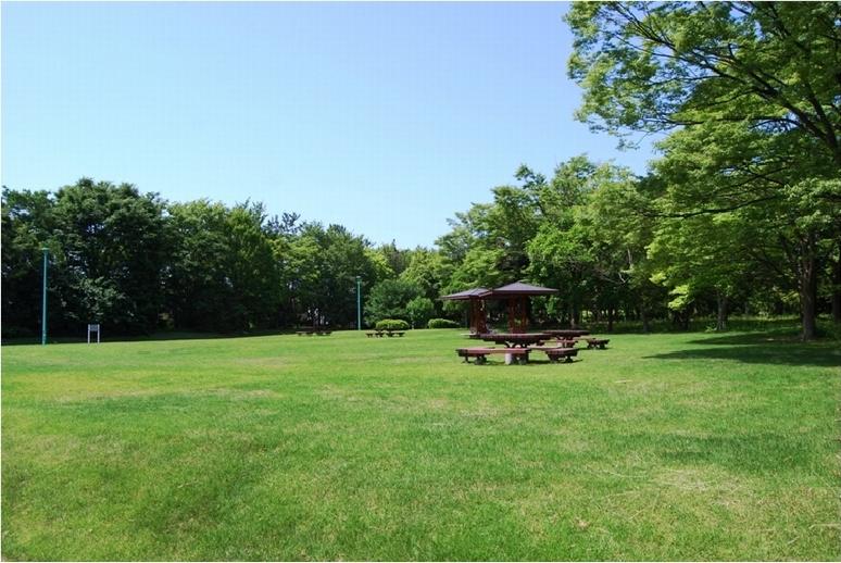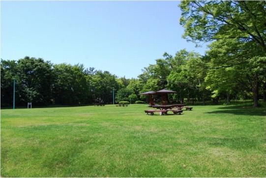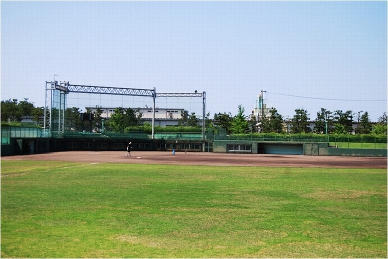富山新港をとりまく臨海公園地帯から公害防止のために設けた緩衝緑地。野球場、芝生公園、テニスコートがある。