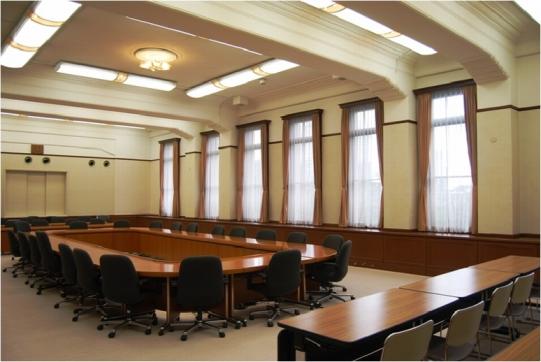 昭和10年(1935年)に建築された耐震・耐火の鉄筋コンクリート造4階建てモダニズム様式の近代建築物。県庁舎の設計を監修したのは、国会議事堂の設計を担当した大蔵省営繕管財局工務部長の大熊喜邦氏。昭和20年の富山大空襲で街中は甚大な被害を受けたが、重厚で堅牢な耐火建築物であった富山県庁舎は焼け残った。県庁舎竣工80周年となった平成27年に、国登録有形文化財に指定された。同年に県庁舎の文化財登録を記念し、庁舎本館屋上の一部に屋上庭園が整備され、県民に毎年期間限定で一般開放している。