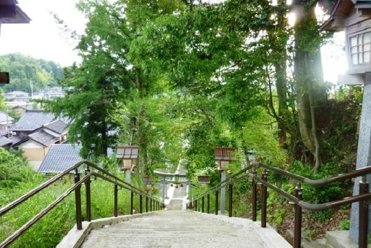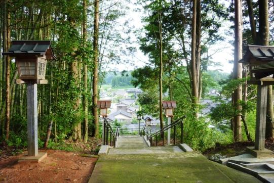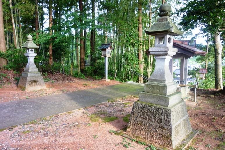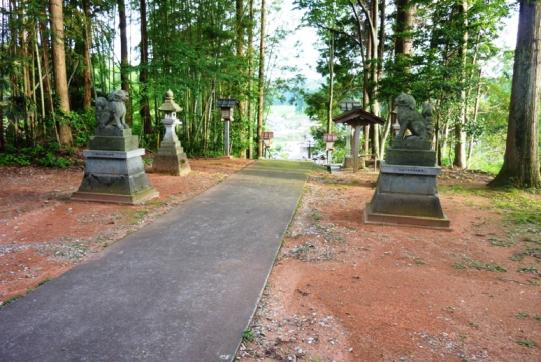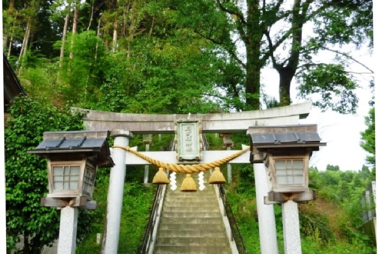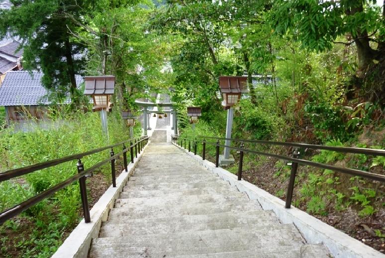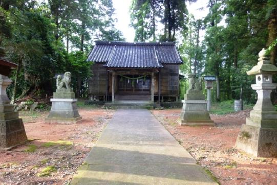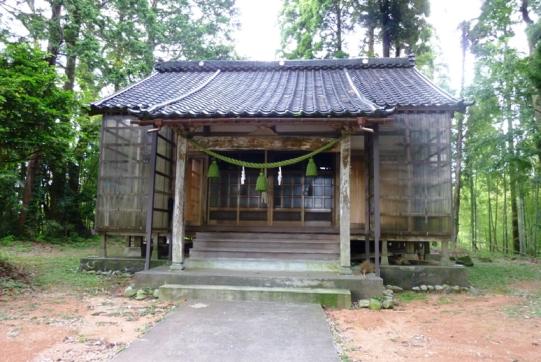 典型的な村の神社。主祭神:猿田彦大神。毎年、9月には、青年団による獅子舞が奉納される。大蛇伝説などが残る。
