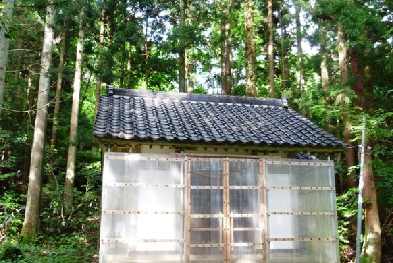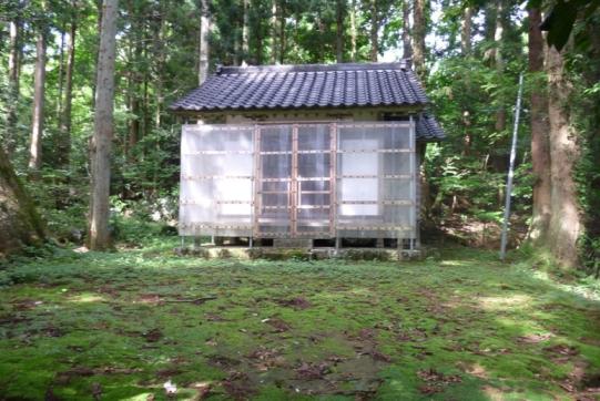 磯部部落の山間部に鎮座し、同部落の延喜式内社磯部神社の旧社地といわれ「上の宮」と呼ばれている。神社の前には棚田がある。