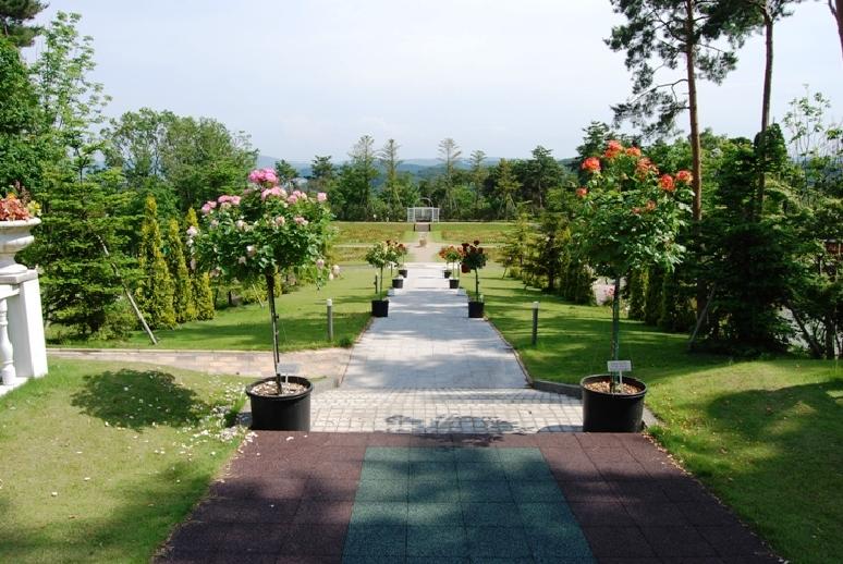 小高い丘に広がる44,000㎡の西洋風の花と緑のガーデン。立山と海と空の美しい連携が奏でる心地よい場所特に、狩りの後バーベキューをして遊んだ庭と言われるオランダのキューケンホフガーデンと100年ガーデンと言われ、沈んだ土地に作ったカナダのブッチャートガーデンに深い感銘を受けました。 世界最高のガーデンとの出会いから生まれたここ「あいやまガーデン」には240種、3,000種のバラたちが咲き誇り、チュ―リップや椿、山野草などの花々たちが皆さま方をお迎えしてくれます。