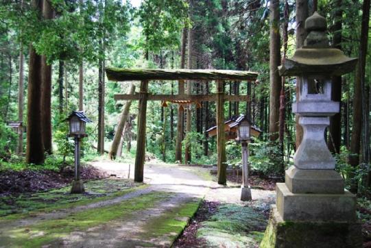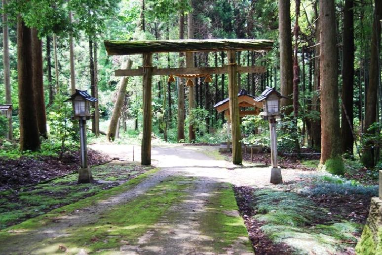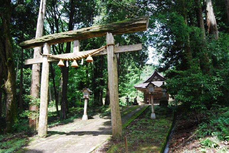 旧「布瀬水海」を俯瞰し、汚れた舟はとめられたので現在地におろしたと言われている。天然木を利用した鳥居が見事。