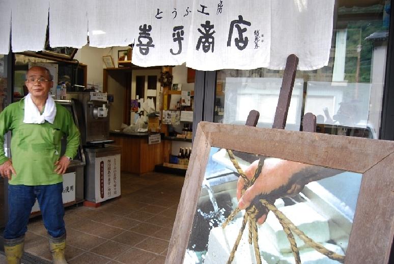 五箇山は、長く平野部との交流が不便だったため、結果、古いものがたくさん残った。その一つが「五箇山豆腐」だ。岩崎喜平商店は地元産の大豆を使い、湧き水と本ニガリを合わせ、手作りで製造している。昔は縄で縛って持ち運んだというほどの硬さですが、加熱するとやわらかくなり、使いやすい食材。