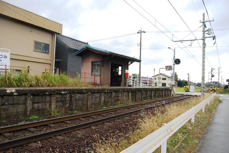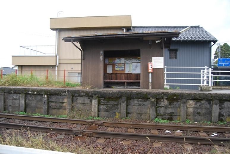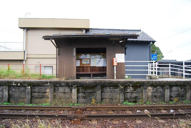 踏切に近接した単式1面1線のホームを持つ地上駅。駅舎がなくホーム上に待合室があるだけの無人駅である。近くに千代鶴酒造がある。