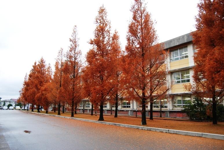 昭和58年開校。呉羽丘陵の麓にあり、54,000㎡の広大な敷地。音楽コースで利用する特別教育棟、中庭の屋外ステージ、メタセコイアの並木、大きな池が特徴。
