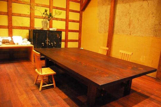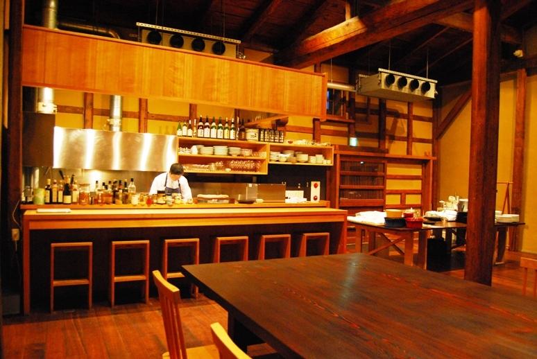 岩瀬の廻船問屋が立ち並ぶ街並みにある「森家」の蔵。その蔵の一つを改装した隠れ家的レストラン。天井も高く、とても素敵な空間。ディナーは一日一組限定。
