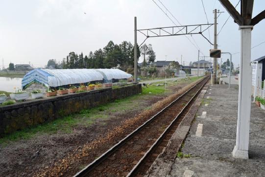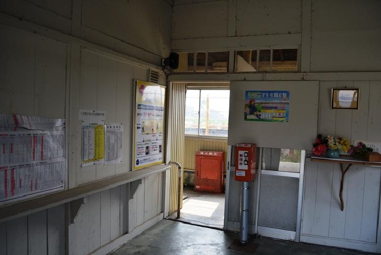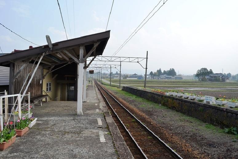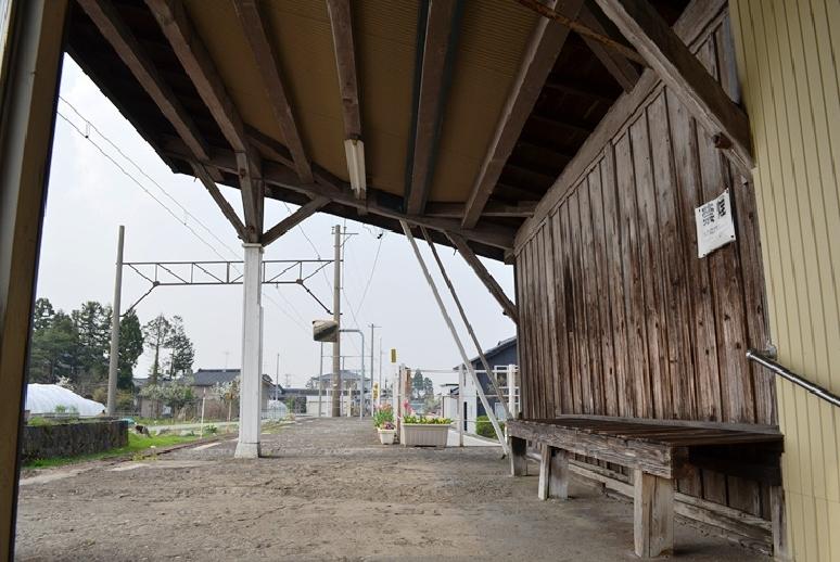 木造の駅舎が現存するが、駅員は配置されていない。周辺は水田が多い。